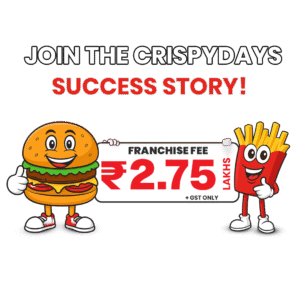 Start your Crispydays franchise with a one-time Franchise Fee of ₹4.99 Lakhs + GST, which includes training, branding, and ongoing support. The Royalty Fee is 3% of sales or ₹30,000 (whichever is higher), ensuring continuous brand growth and marketing support. Ready to be part of Hyderabad’s favorite fast-food brand?